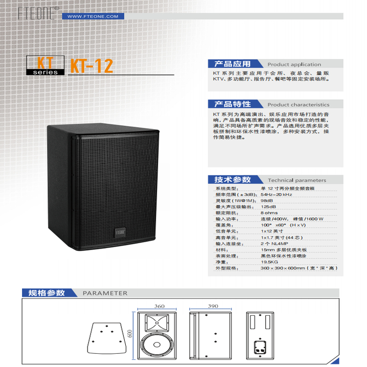 系统类型: 单12寸两分频全频音箱