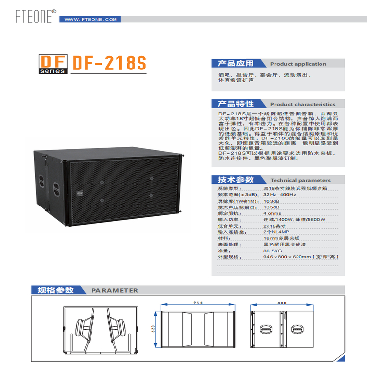 系统类型 (Type): 双18英寸线阵远程低频音箱