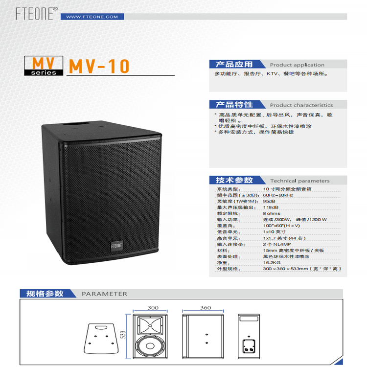 系统类型: 10寸两分频全频音箱